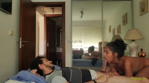 Horny Brown Girl With Her White Dick Letting Him Cum in Her Pussy